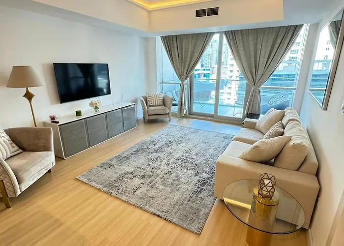 Appartement Moderne Dubai Marina cu 1 dormitoare este situată la mai puțin de 1.5 km de Pier 7 și la 11 minute de mers pe jos de JPR Bwach. Acesta este situat la 60 de minute cu mașina de Business Bay și la o plimbare de stația de autobuz Big Boat tour start.